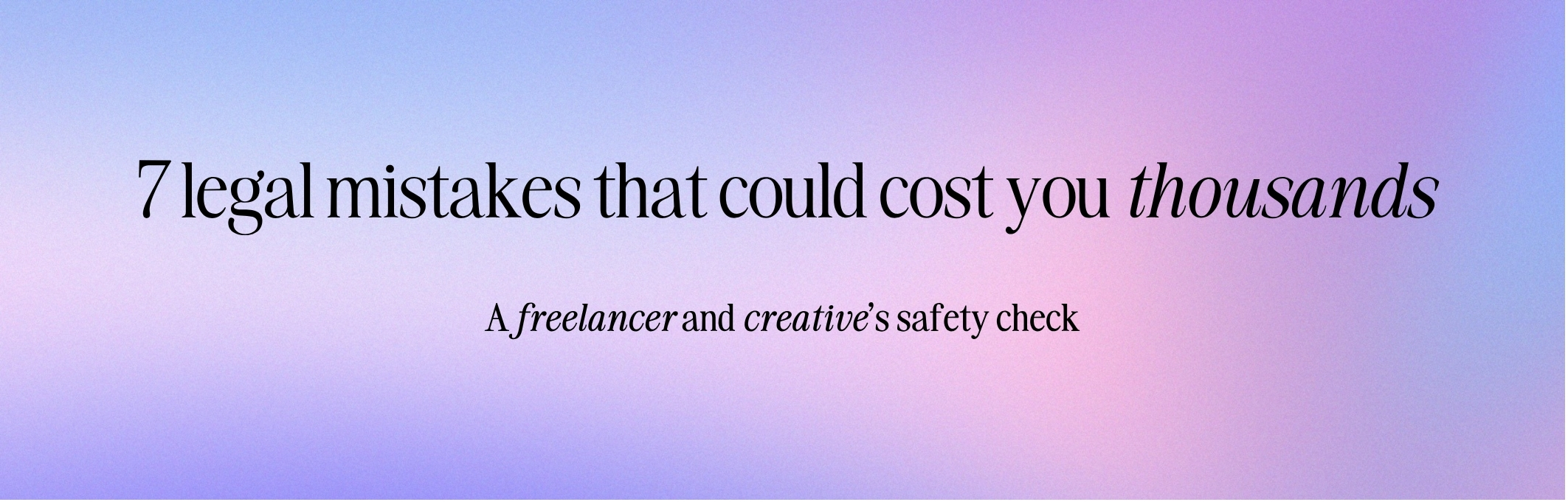 Discover the 7 most common legal mistakes freelancers & creatives make, and how to avoid them. This is a free 2-minute checklist to protect your work, brand and income.